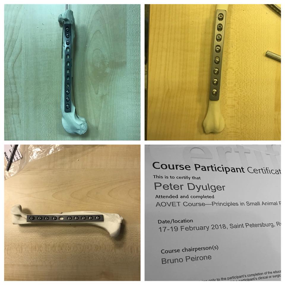 Прошли курсы по остеосинтезу от AOVET – самой авторитетной в мире организации в этом направлении (AO Foundation или AO/ASIF).